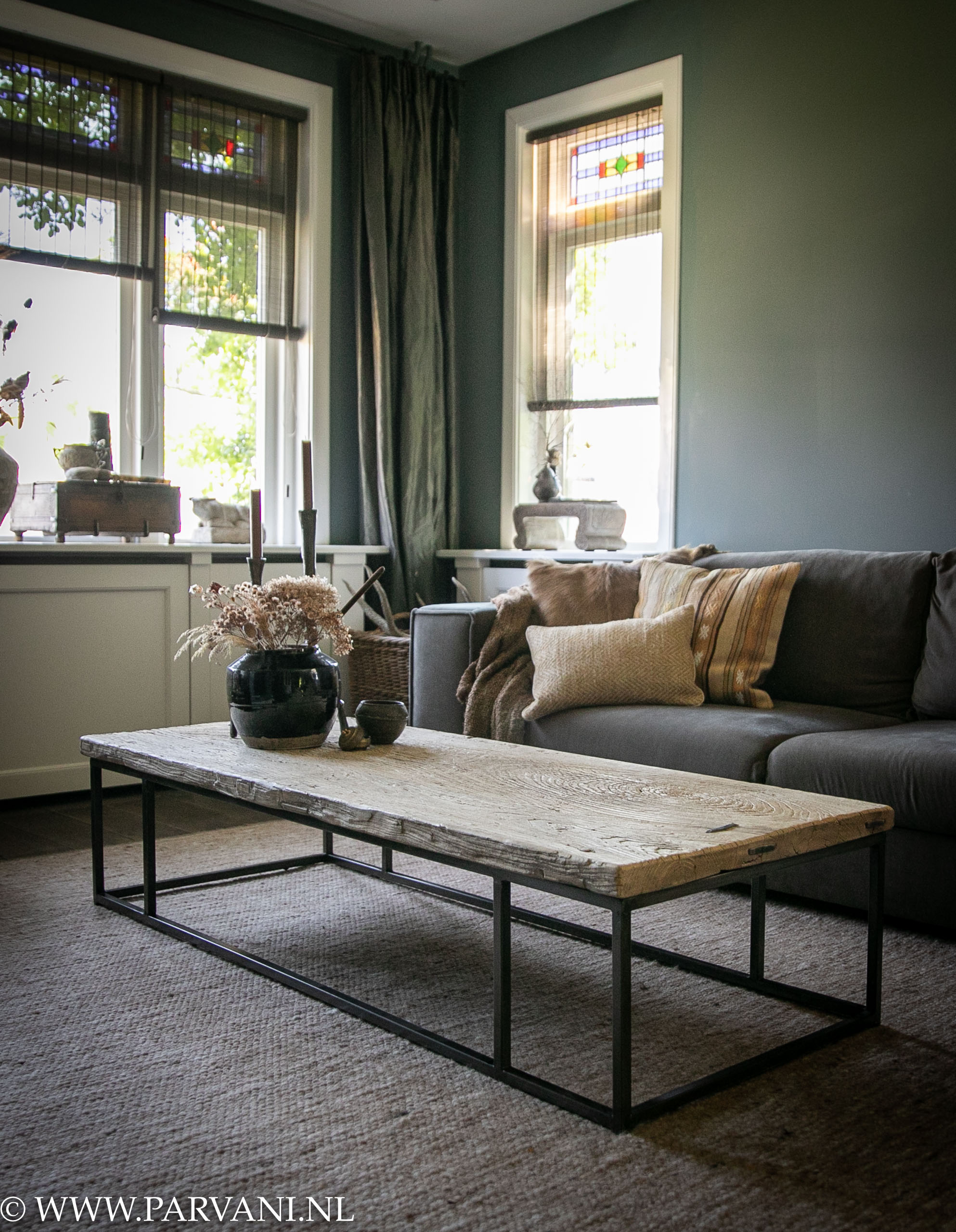 Stoere salontafel gemaakt van een oude Chinese deur. Het blad heeft een mooie blanke naturelle kleur en een prachtige tekening in het hout. Het ziet er mooi robuust en grof uit maar voelt juist glad dus geen last van splinters. Op een paar plekken is het voorzien van metalen krammen. De afmeting is 66x 167x 39 cm (bxlxh) en de prijs is €1149,- Ben u op zoek naar een soortgelijke tafel in een andere afmeting, laat me even weten, ik ga graag voor u op zoek!Onder de tafel ligt een wollen vloerkleed in warme bruinroze kleur. Deze tapijten kunnen we in vele structuren, kleuren en afmetingen voor u laten maken.