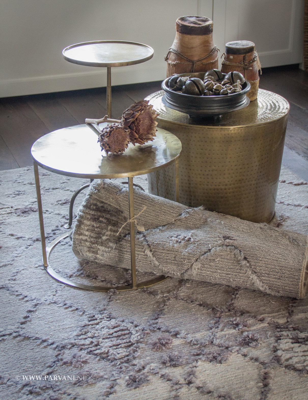 De bijzettafeltjes zijn verkrijgbaar in de winkel, in verschillende vormen en afmetingen, zie onze pagina kleinmeubelen. Het brass kleurige tonnetje is helaas niet meer leverbaar.