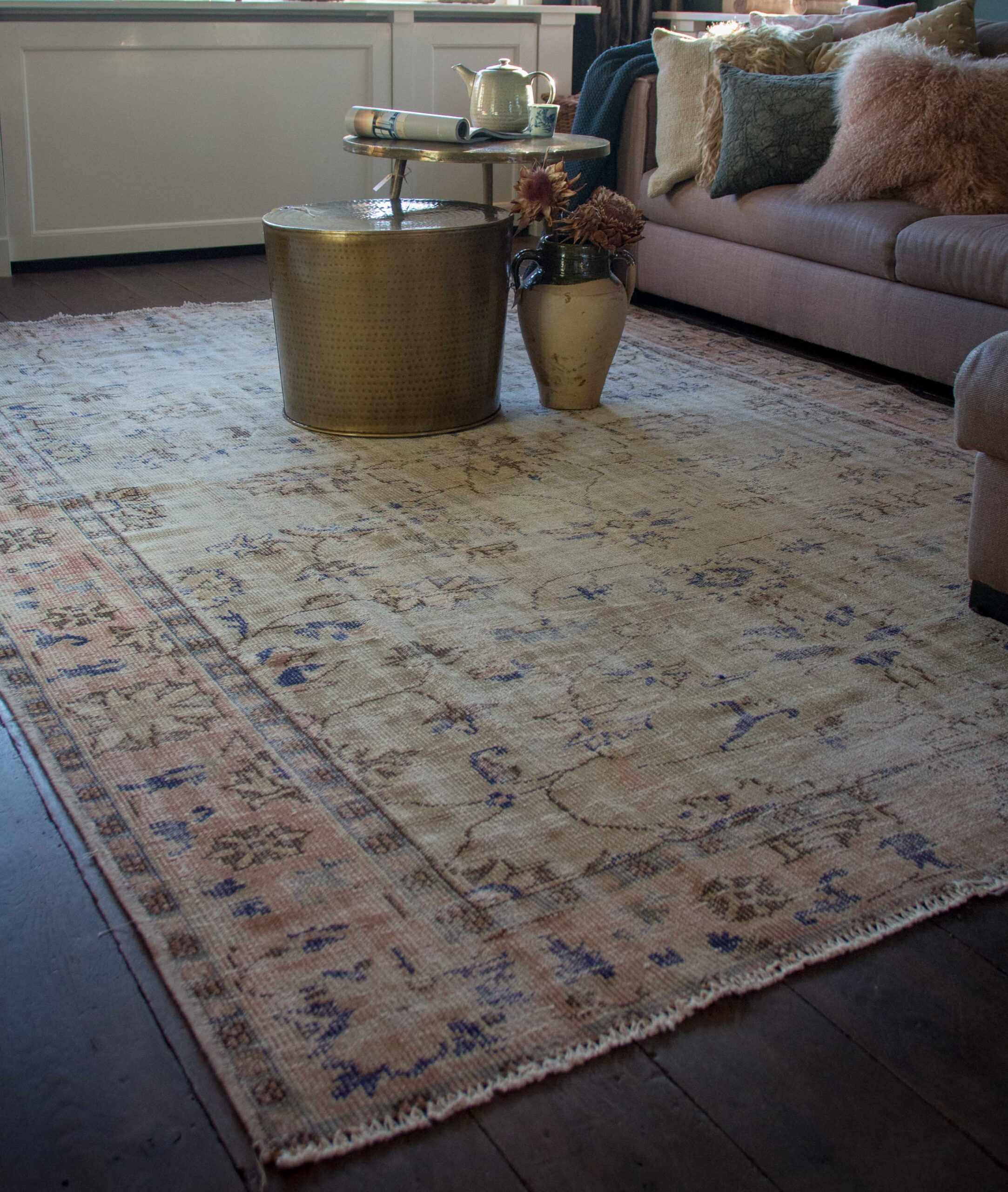 Vintage vloerkleed naturel roze blauw